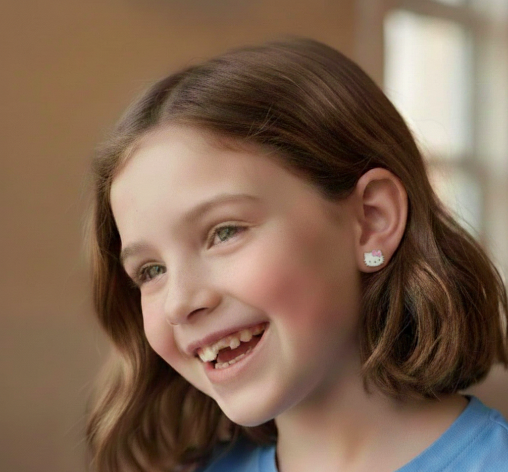 Descubre la ternura y estilo de nuestros Aretes de niña 👧🏻 o de cartílago 👂 Hello Kitty, diseñados para las pequeñas princesas y amantes del icónico personaje. Hechos con materiales de calidad, son perfectos para cualquier ocasión, aportando un toque dulce y divertido a su look diario.